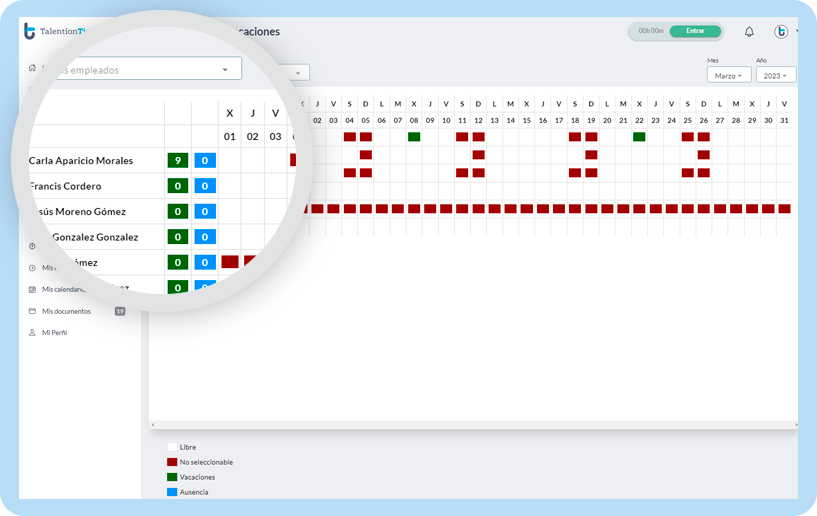 De un solo vistazo, conocerás el estado de las ausencias y vacaciones de tu equipo, por lo que gestionar las solicitudes será más fácil.
